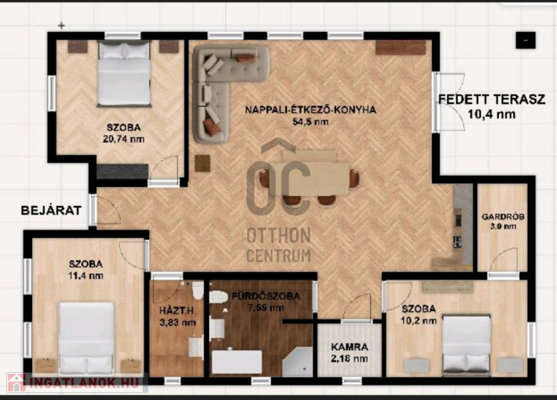 ✅ 3 tágas, világos hálószoba,hatalmas egybenyitott nappali–konyha–étkező tér, valamint praktikus kiszolgálóhelyiségek kapnak helyet.