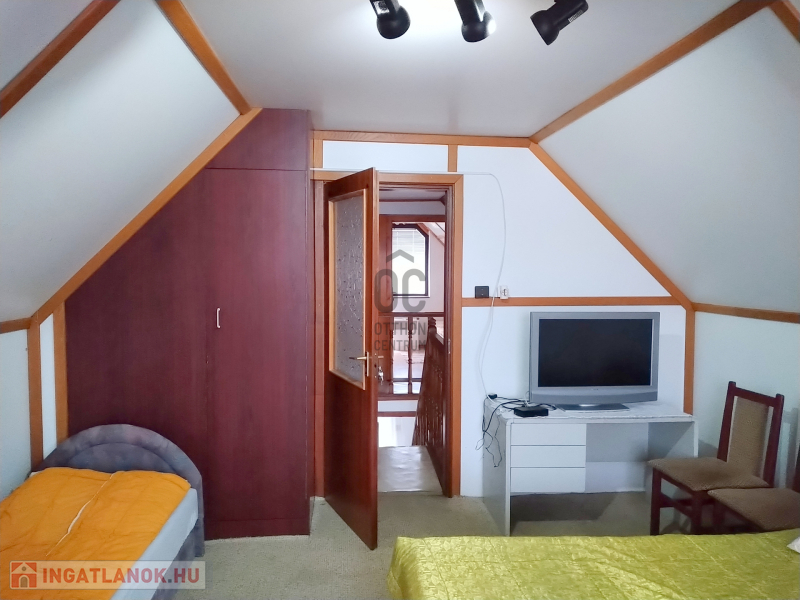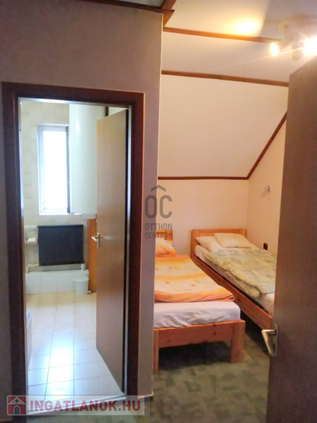 Az emeleti részen található szobákat a hozzá tartozó konyhával, étkezővel, nappalival állandó vendégkör használja jelenleg és lehetőség szerint az új tulajdonosnak is biztos bevételi forrást jelenthet.