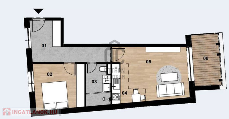 - 50,38 négyzetméter, alacsony energiaigényű, 7,40 négyzetméteres terasszal