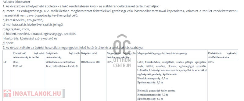 Beépíthetőség: 30%.