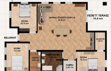 ✅ 3 tágas, világos hálószoba,hatalmas egybenyitott nappali–konyha–étkező tér, valamint praktikus kiszolgálóhelyiségek kapnak helyet.